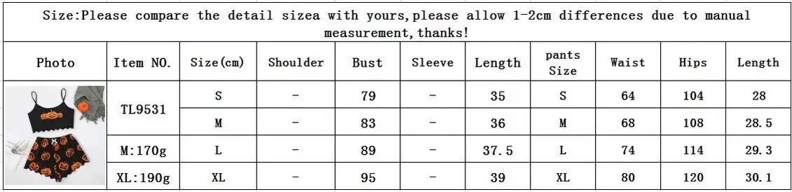 Photo Item NO. | Size | Shoulder (cm) | Bust (cm) | Sleeve Length (cm) | Pants Size | Waist (cm) | Hips (cm) | Pants Length (cm) | Weight |